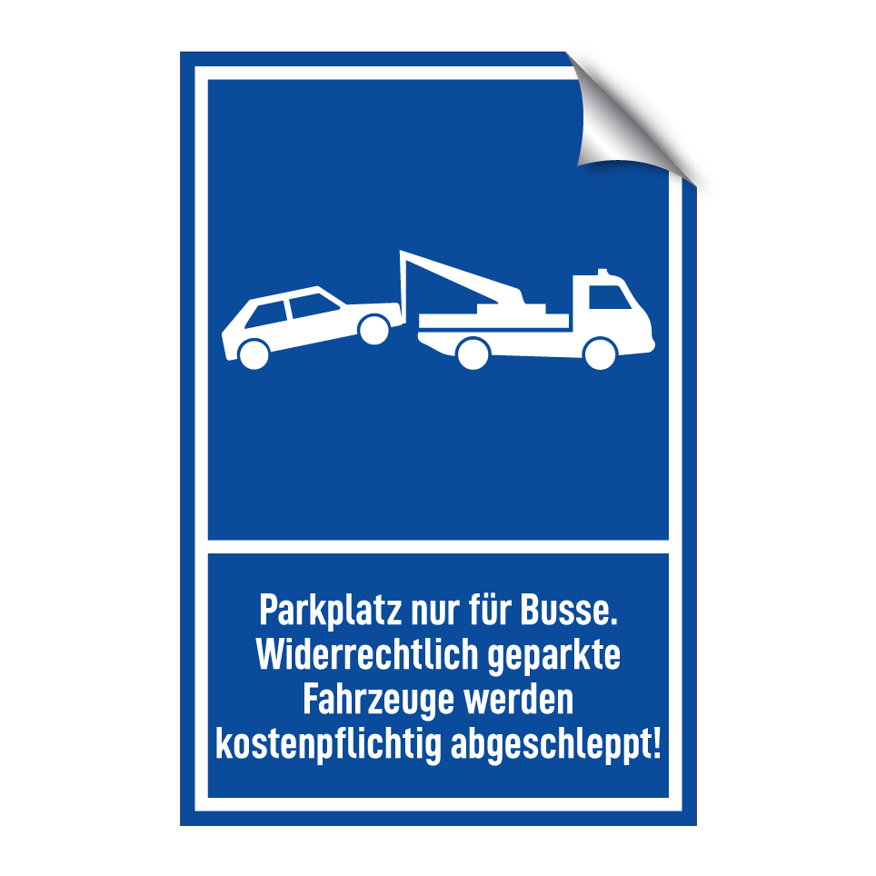 Parkschild mit dem Text Parkplatz nur für Busse. Widerrechtlich geparkte Fahrzeuge werden kostenpflichtig abgeschleppt!