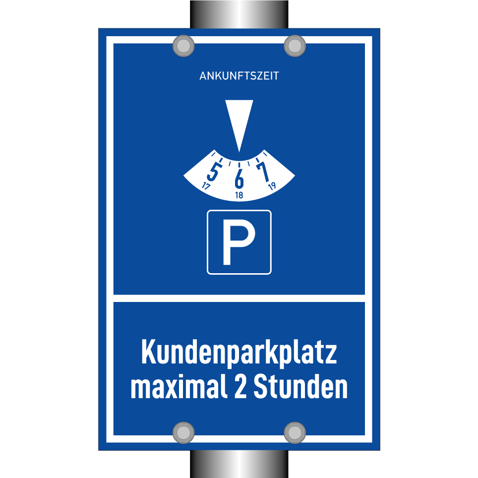 Parkschild mit dem Text Kundenparkplatz maximal 2 Stunden
