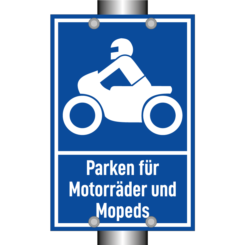 Parkschild mit dem Text Parken für Motorräder und Mopeds