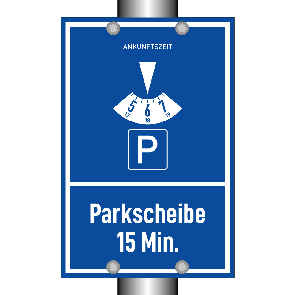 Parkschild mit dem Text Parkscheibe 15 Min