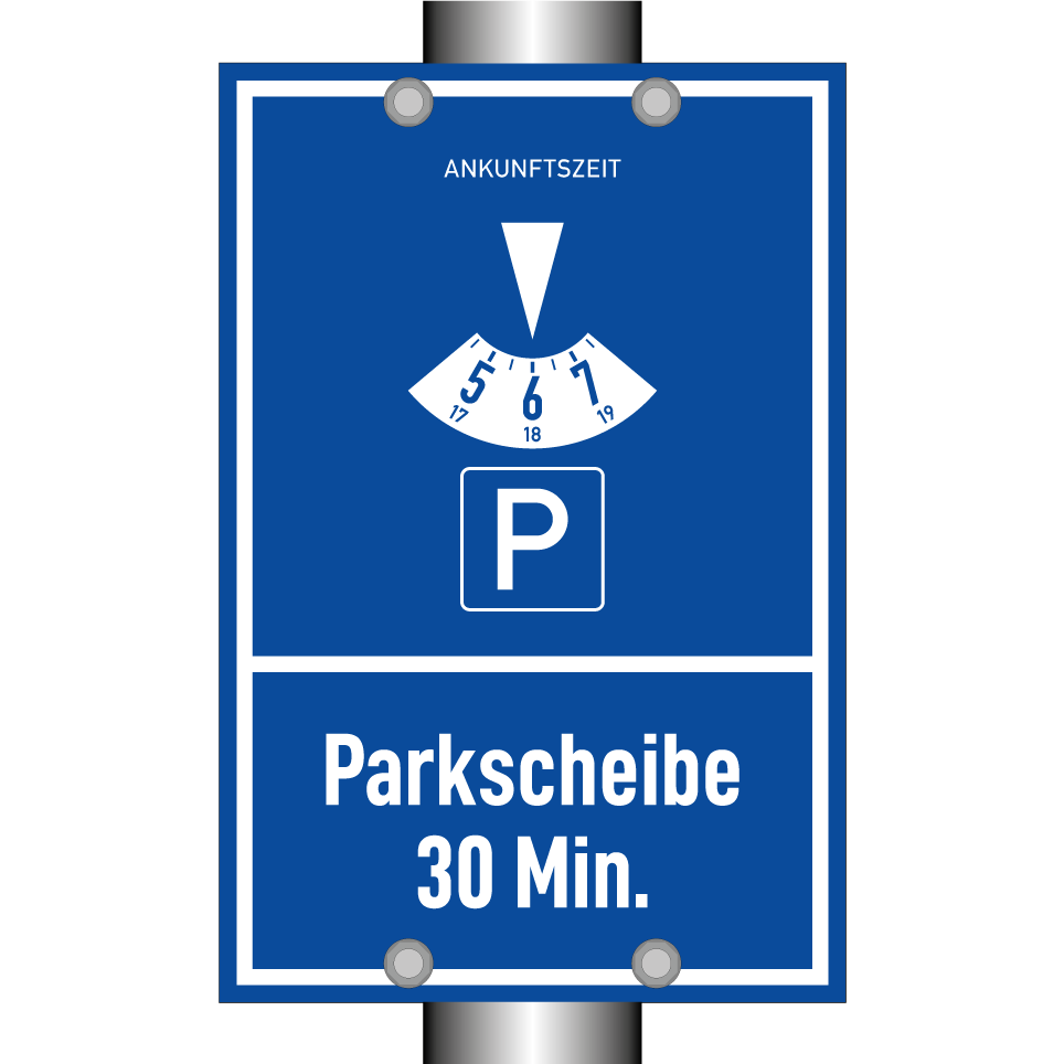 Parkschild mit dem Text Parkscheibe 30 Min.