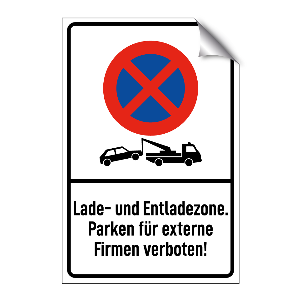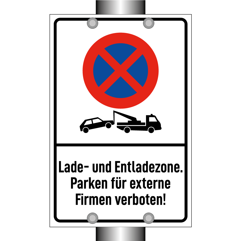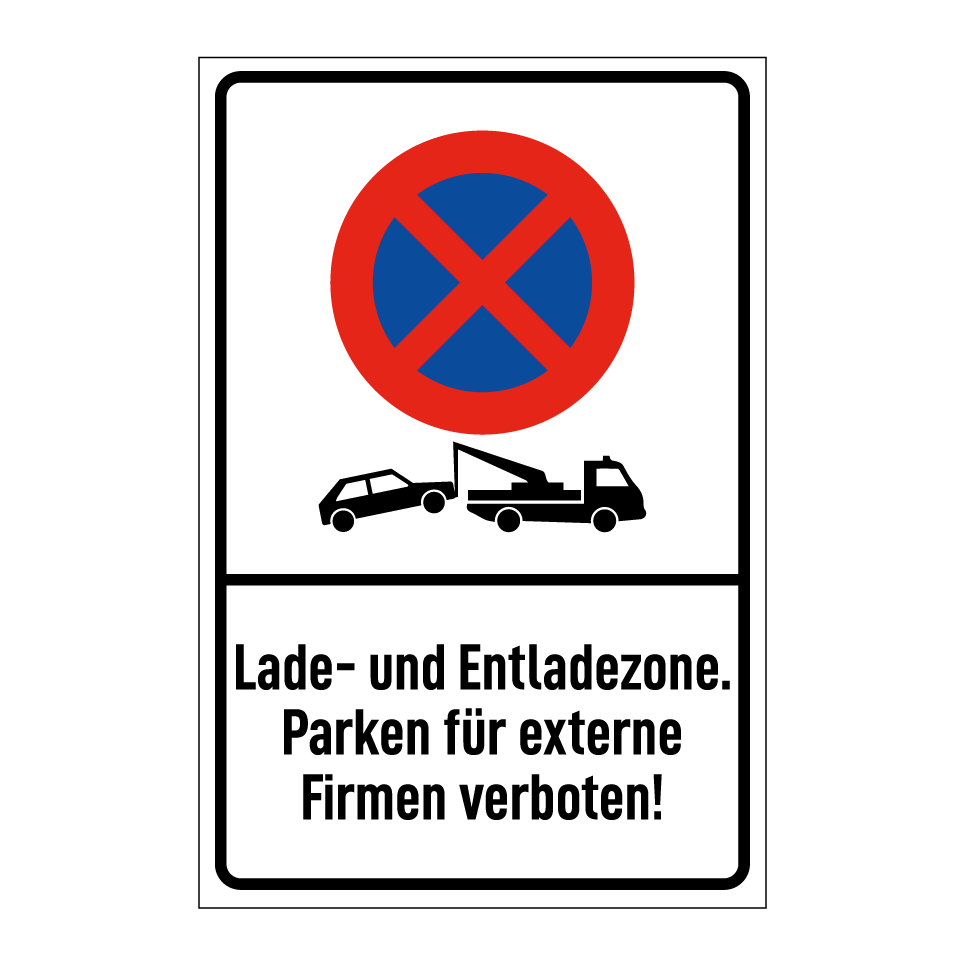 Parkverbotsschild mit dem Text Lade- und Entladezone. Parken für externe Firmen verboten!