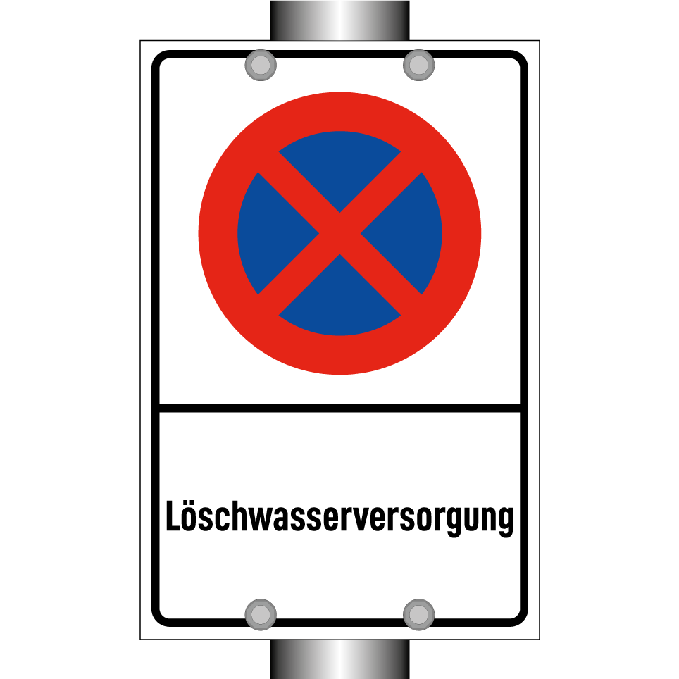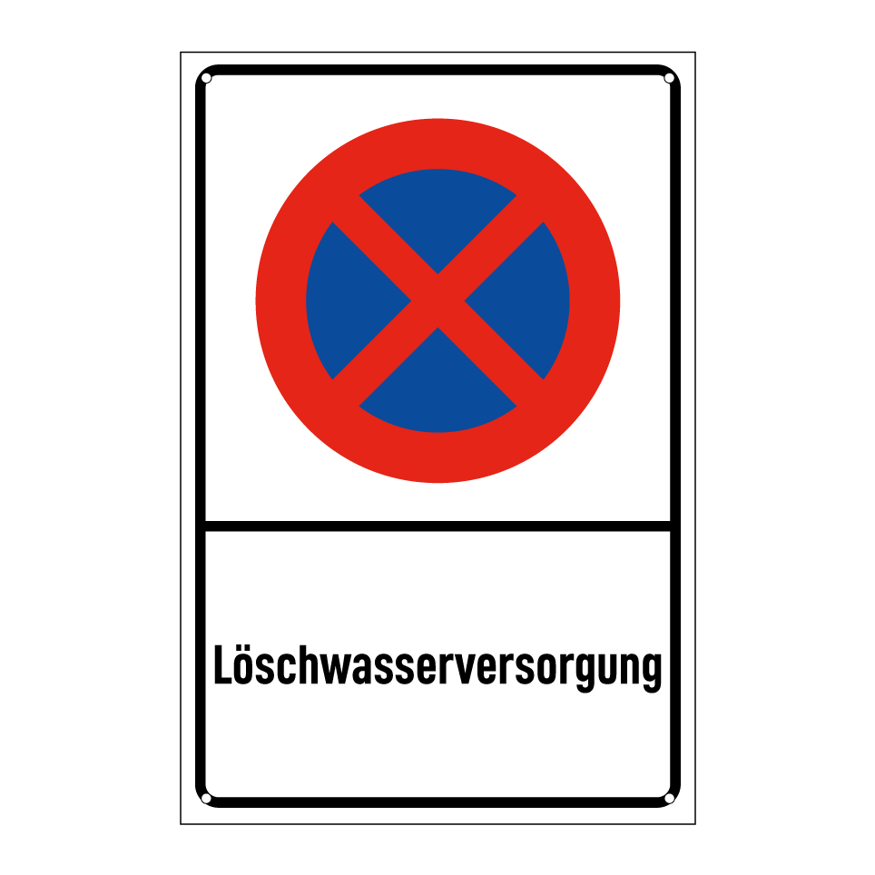 Parkverbotsschild mit dem Text Löschwasserversorgung