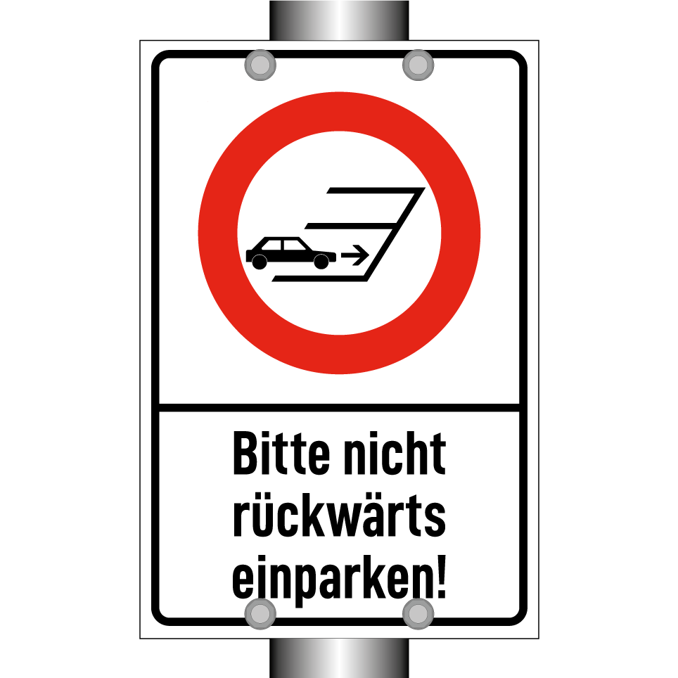 Parkverbotsschild mit dem Text Bitte nicht rückwärts einparken!