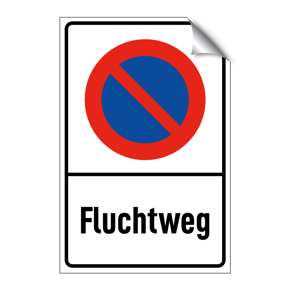 Parkverbotsschild mit dem Text Fluchtweg