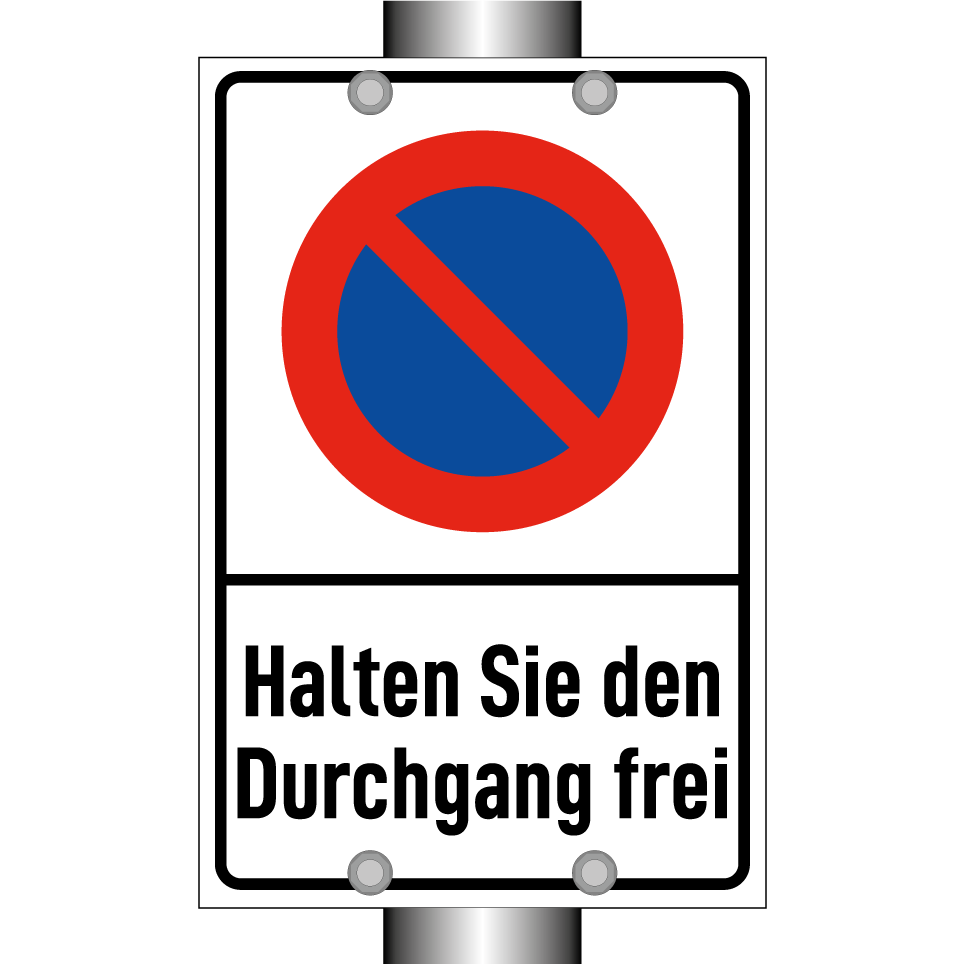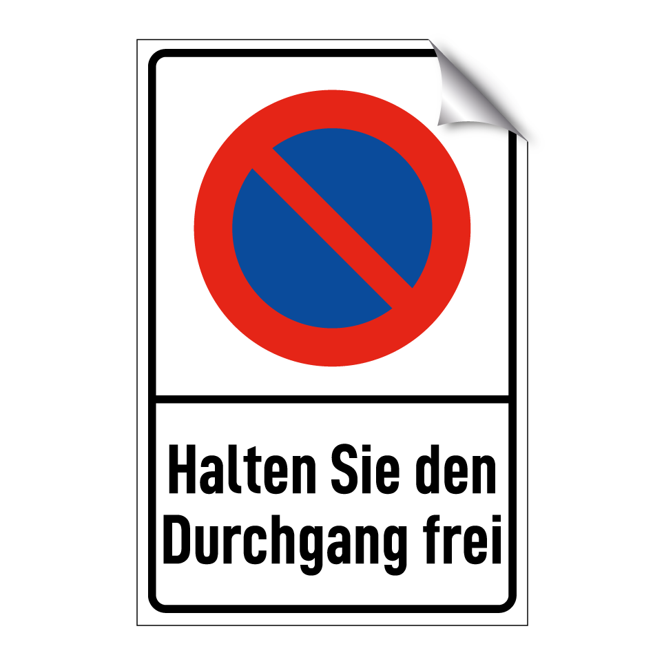 Parkverbotsschild mit dem Text Halten Sie den Durchgang frei