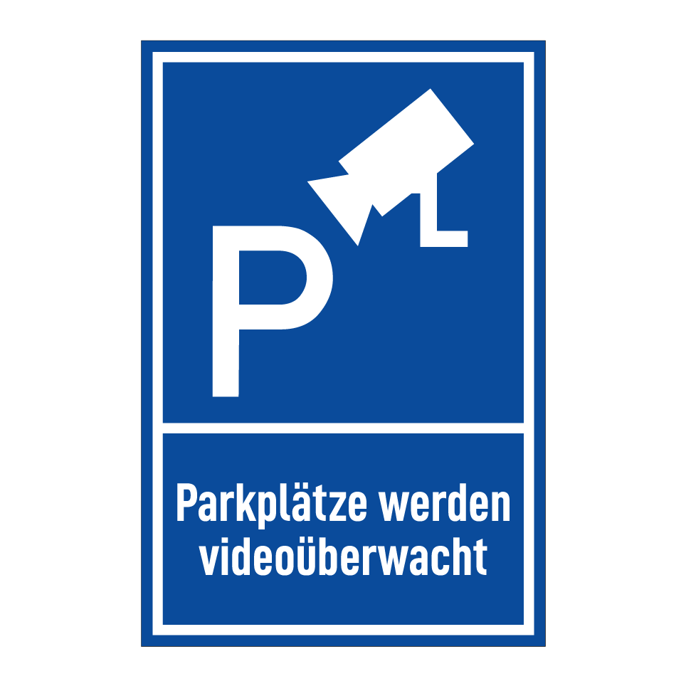 Parkschild mit dem Text Parkplätze werden videoüberwacht
