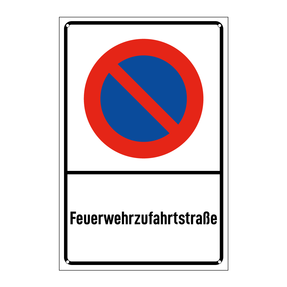 Parkverbotsschild mit dem Text Feuerwehrzufahrtstraße