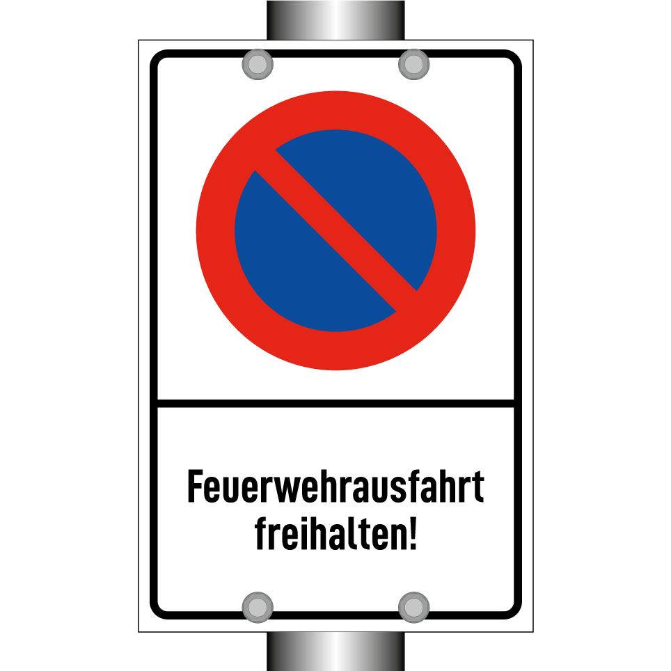 Parkverbotsschild mit dem Text Feuerwehrausfahrt freihalten!