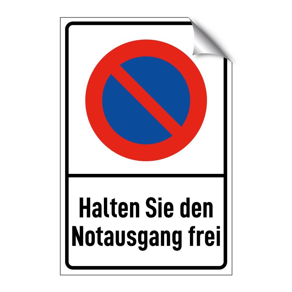 Parkverbotsschild mit dem Text Halten Sie den Notausgang frei