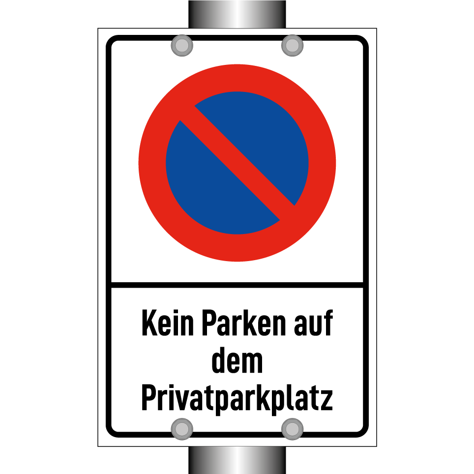 Parkverbotsschild mit dem Text Kein Parken auf dem Privatparkplatz