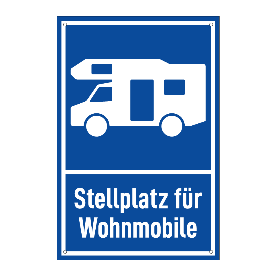 Parkschild mit dem Text Stellplatz für Wohnmobile