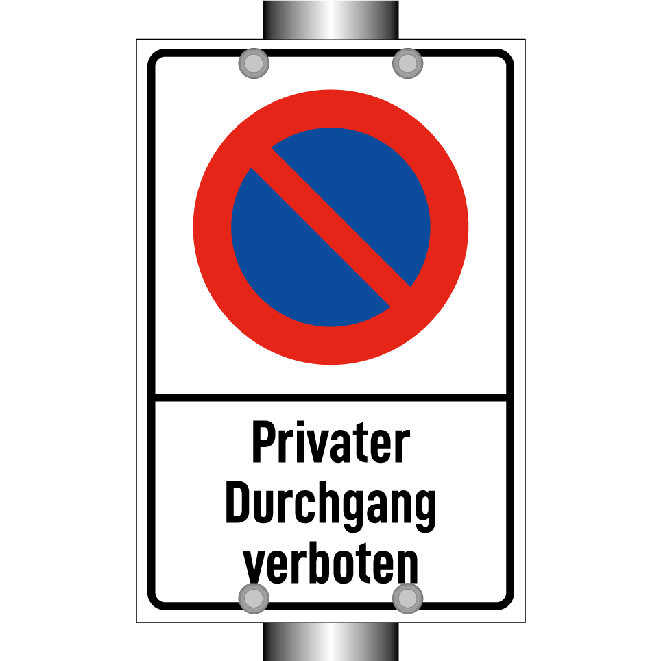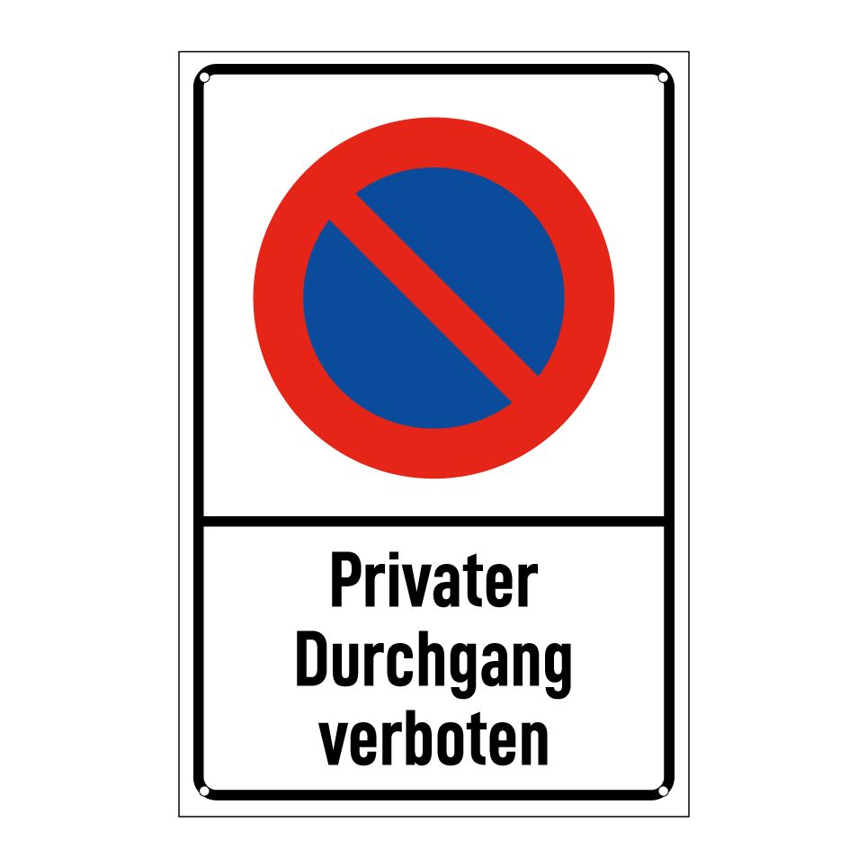 Parkverbotsschild mit dem Text Privater Durchgang verboten