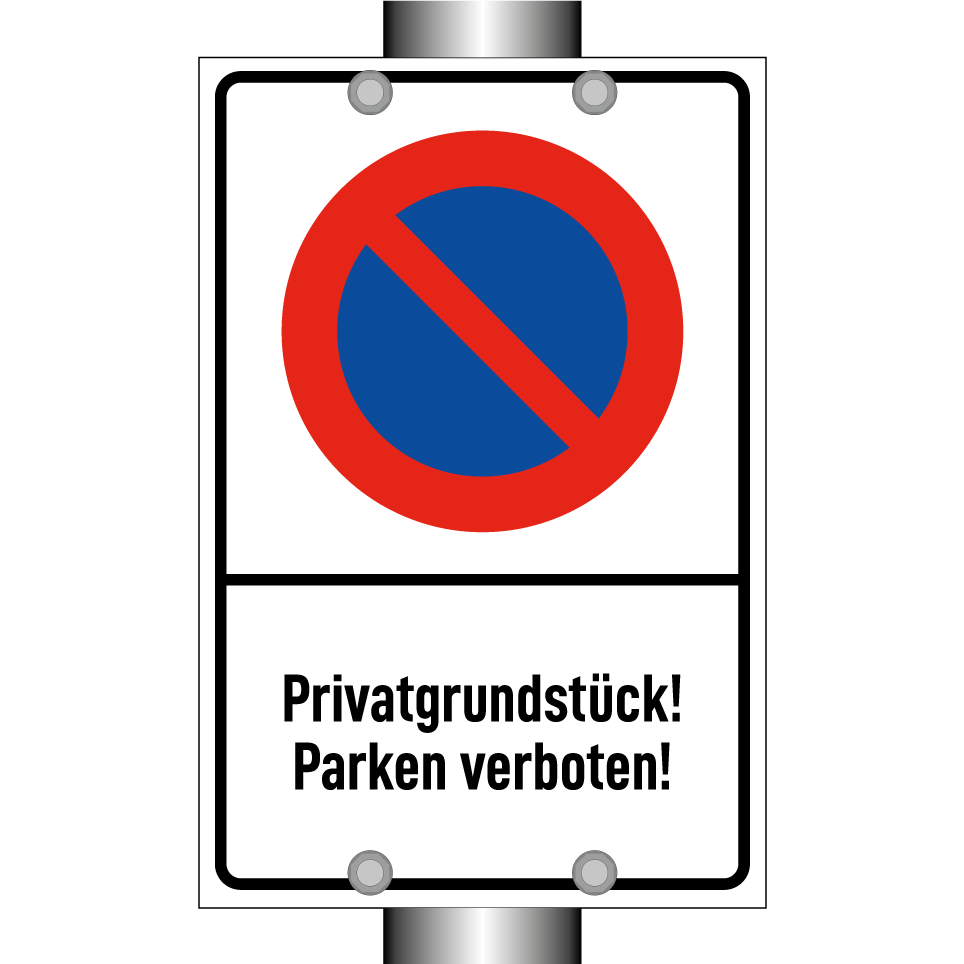 Parkverbotsschild mit dem Text Privatgrundstück! Parken verboten!