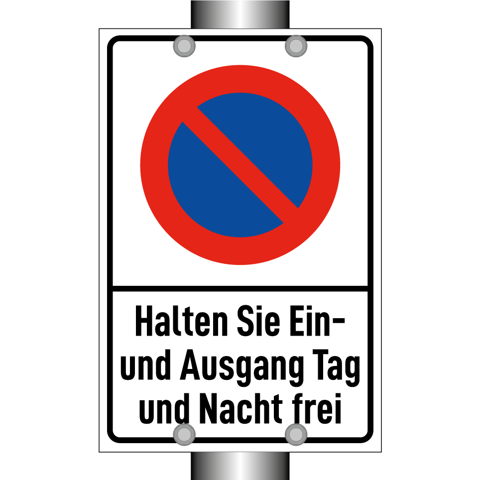 Parkverbotsschild mit dem Text Halten Sie Ein- und Ausgang Tag und Nacht frei