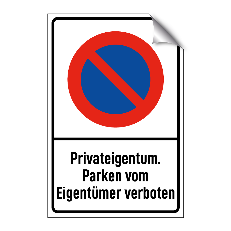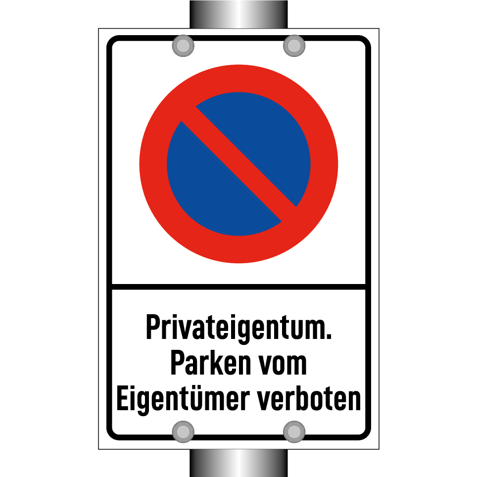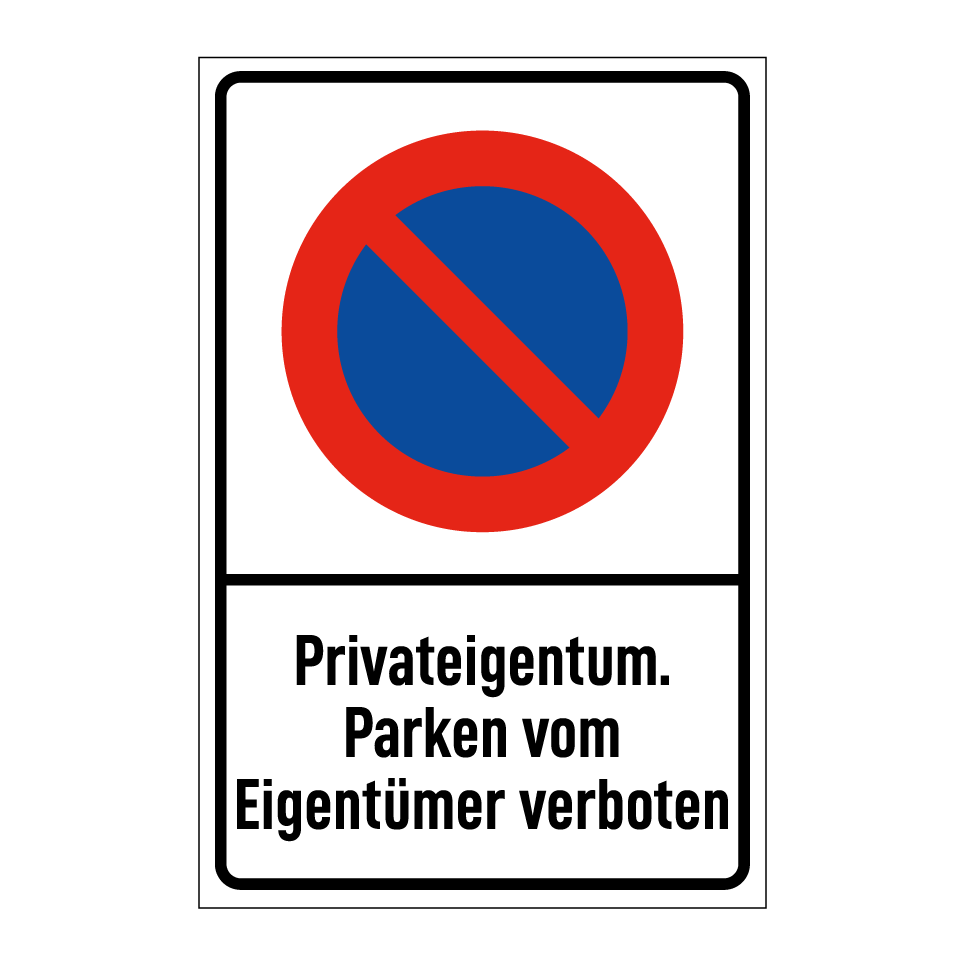 Parkverbotsschild mit dem Text Privateigentum. Parken vom Eigentümer verboten