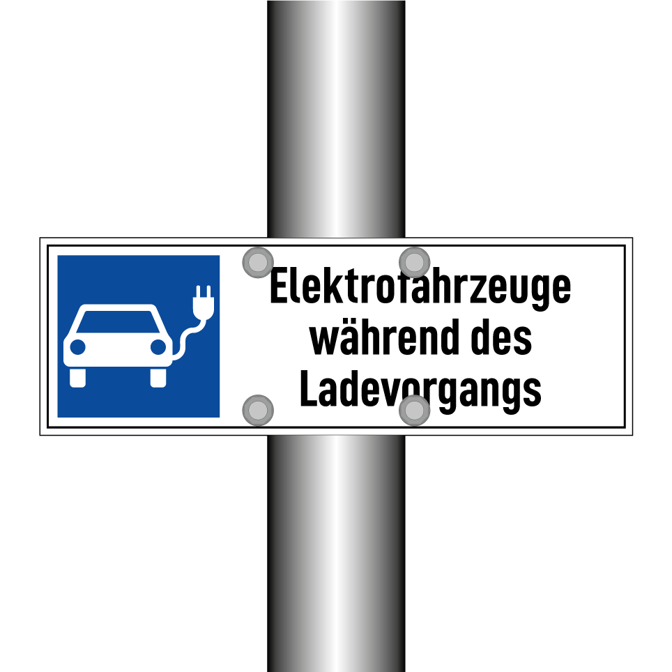 Parkschild mit dem Text Elektrofahrzeuge während des Ladevorgangs