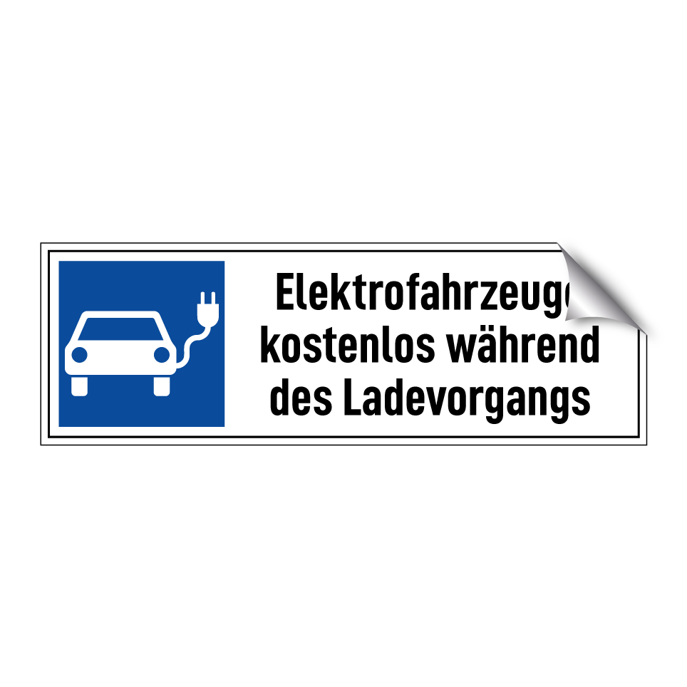 Parkschild mit dem Text Elektrofahrzeuge kostenlos während des Ladevorgangs