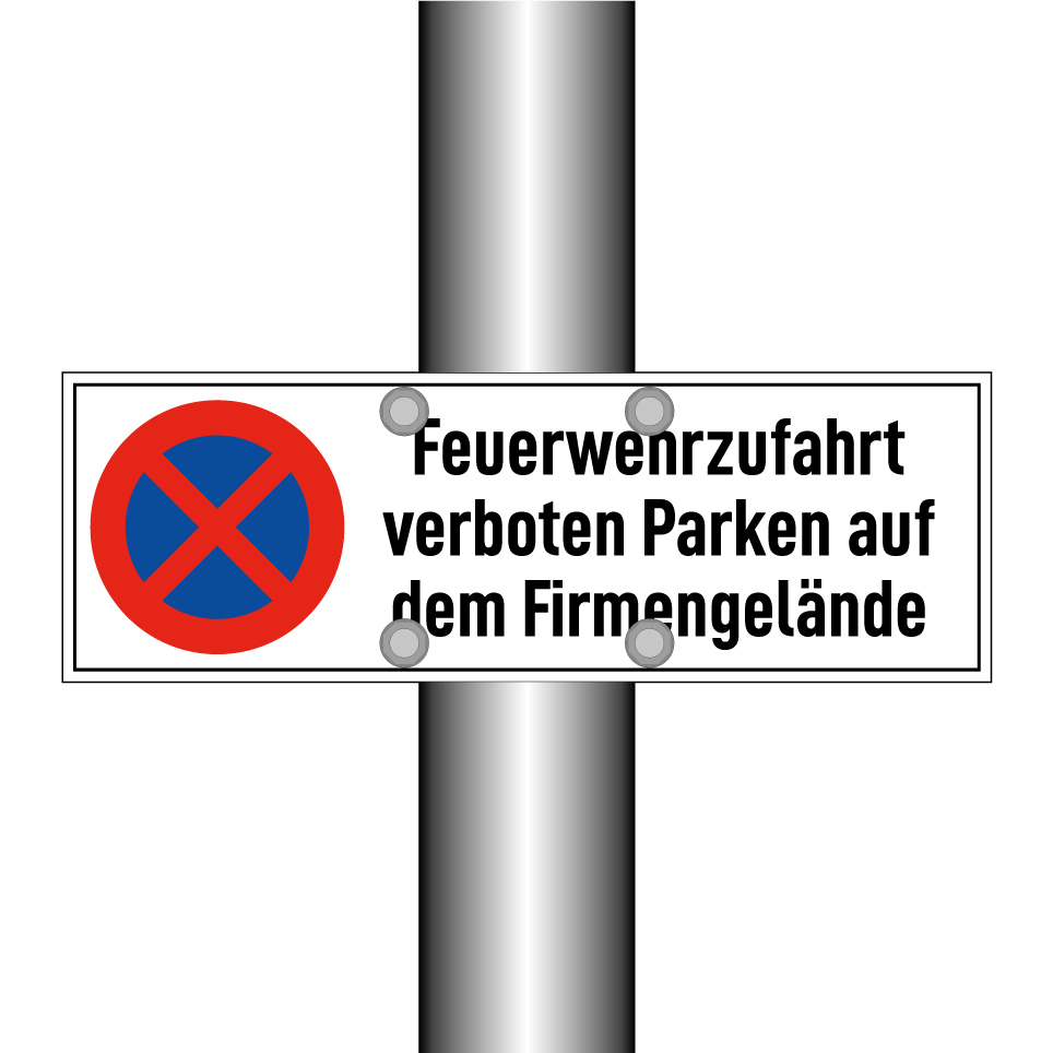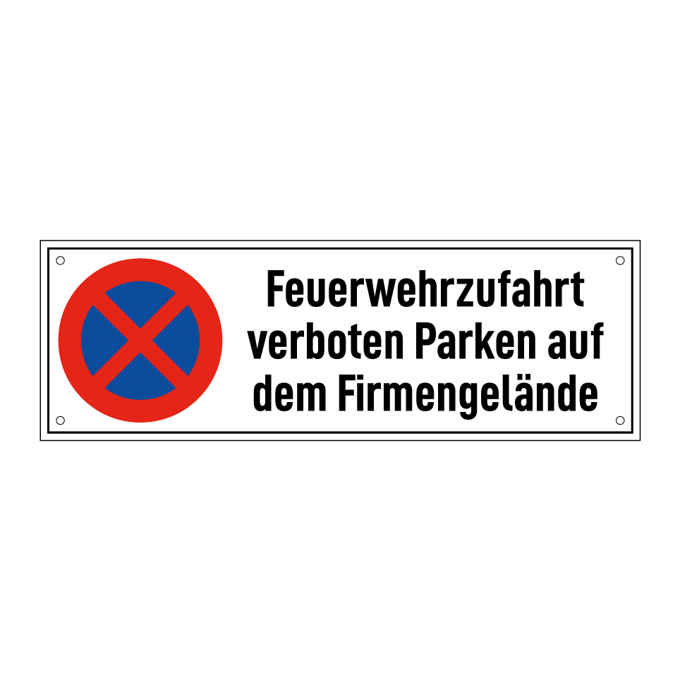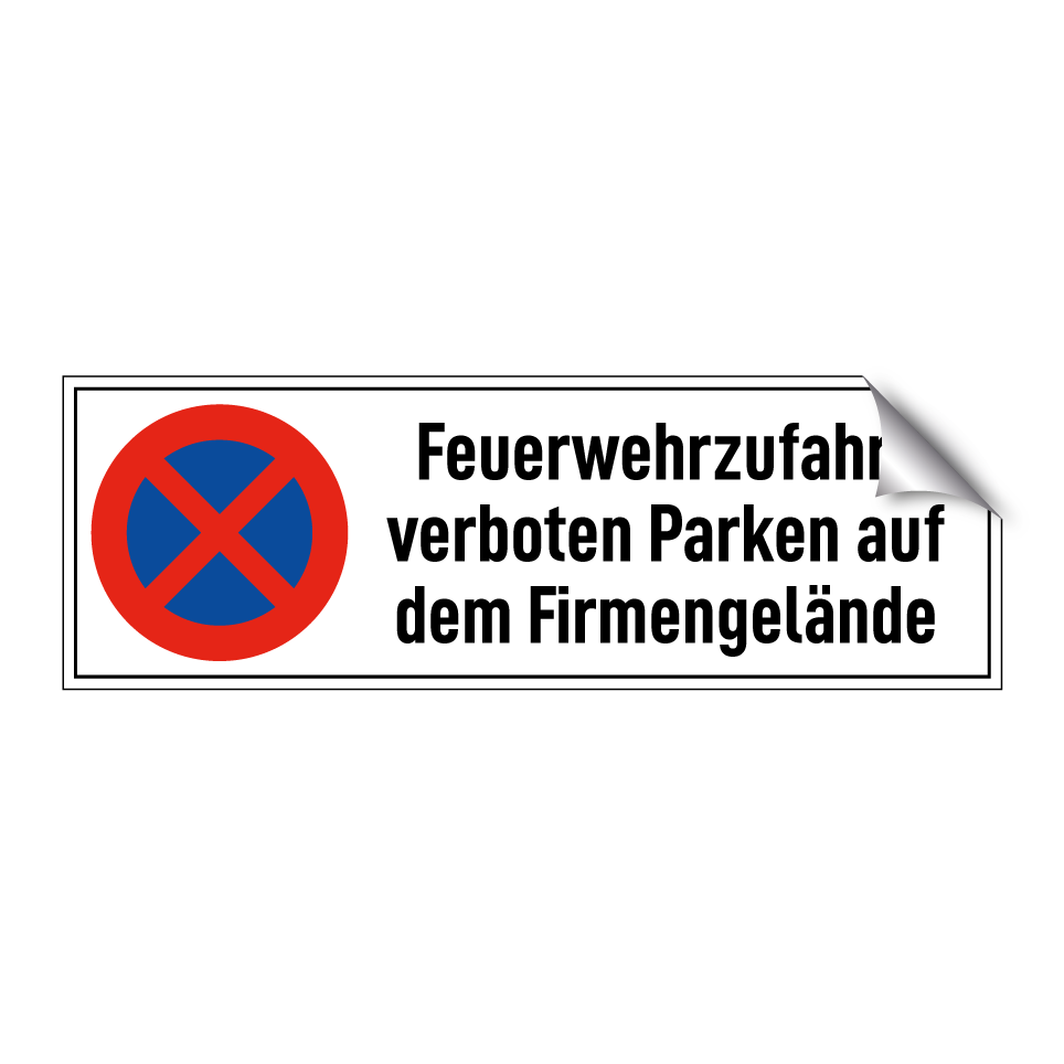 Parkverbotsschild mit dem Text Feuerwehrzufahrt verboten Parken auf dem Firmengelände