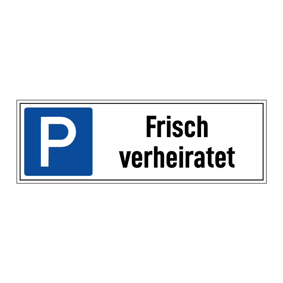 Diese dekorative Hinweistafel eignet sich perfekt für Hochzeitsfeiern und kann an verschiedenen Orten wie dem Empfangsbereich, dem Eingang zur Feier oder sogar am Hochzeitsauto angebracht werden. Sie dient dazu, die Gäste auf das frisch vermählte Paar aufmerksam zu machen und eine festliche Atmosphäre zu schaffen. Die klare Gestaltung mit weißem Hintergrund und schwarzem Rahmen sorgt dafür, dass die Botschaft sofort ins Auge fällt und leicht lesbar ist. Ideal für den Einsatz im Innen- und Außenbereich.