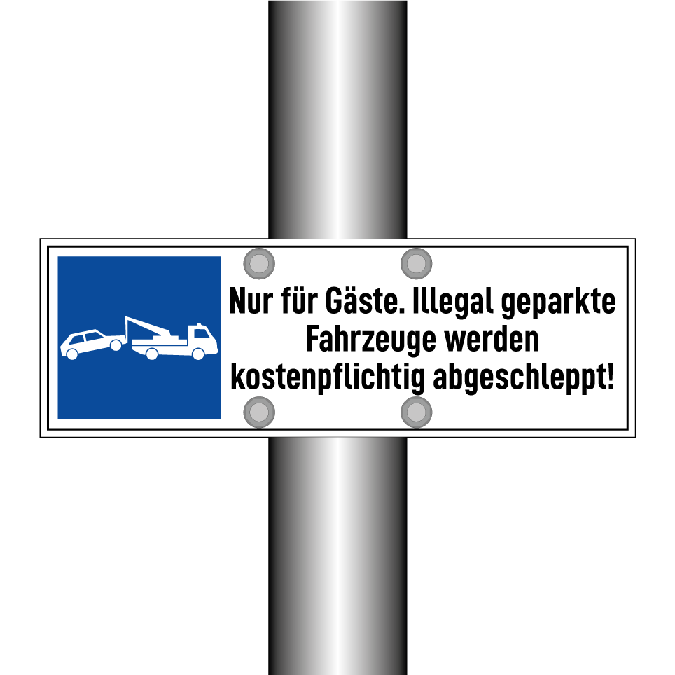 Parkschild mit dem Text Nur für Gäste. Illegal geparkte Fahrzeuge werden kostenpflichtig abgeschleppt!