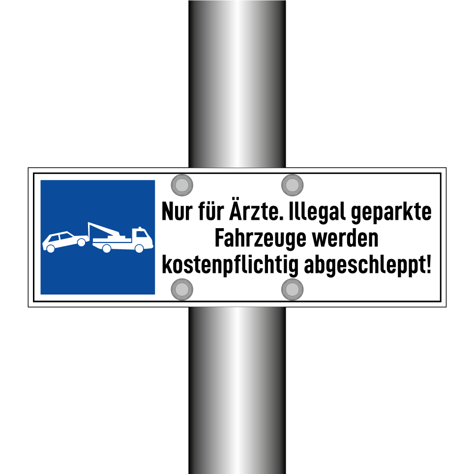Parkschild mit dem Text Nur für Ärzte. Illegal geparkte Fahrzeuge werden kostenpflichtig abgeschleppt!