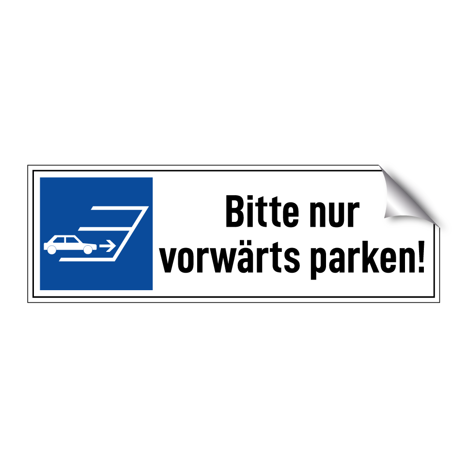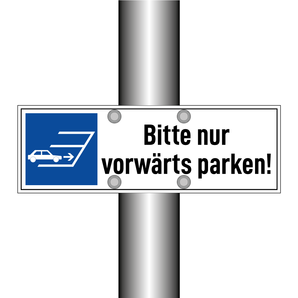 Parkschild mit dem Text Bitte nur vorwärts parken!