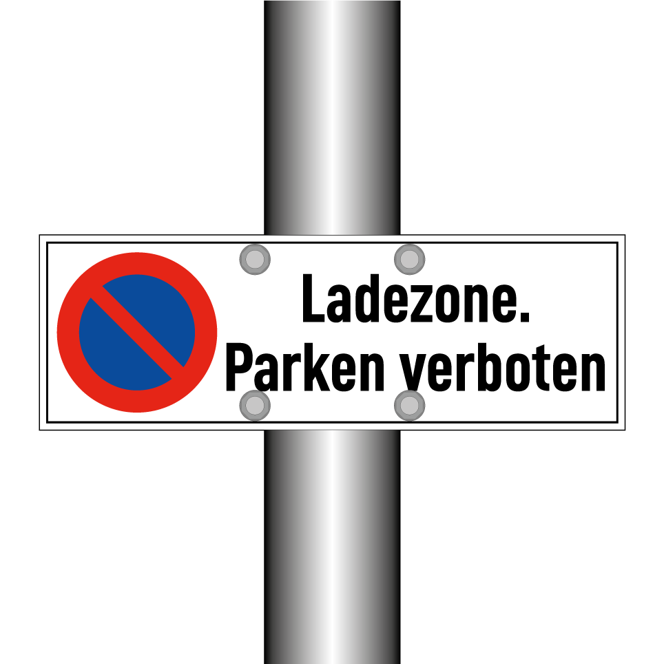 Parkverbotsschild mit dem Text Ladezone. Parken verboten