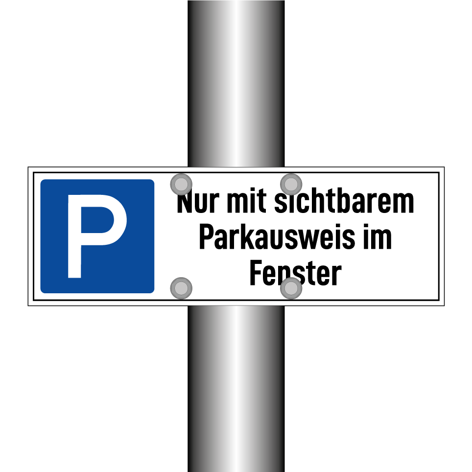 Diese Parktafel ist ideal für Parkplätze, die eine spezielle Genehmigung erfordern. Sie kann an Einfahrten, in Parkhäusern oder auf reservierten Stellplätzen angebracht werden, um sicherzustellen, dass nur Fahrzeuge mit einem gut sichtbaren Parkausweis im Fenster parken dürfen. Die klare Symbolik und der kontrastreiche Text auf weißem Hintergrund machen sie leicht erkennbar. Diese Tafel trägt zur Ordnung und Sicherheit auf Ihrem Gelände bei und verhindert unbefugtes Parken.
