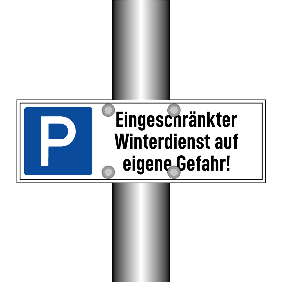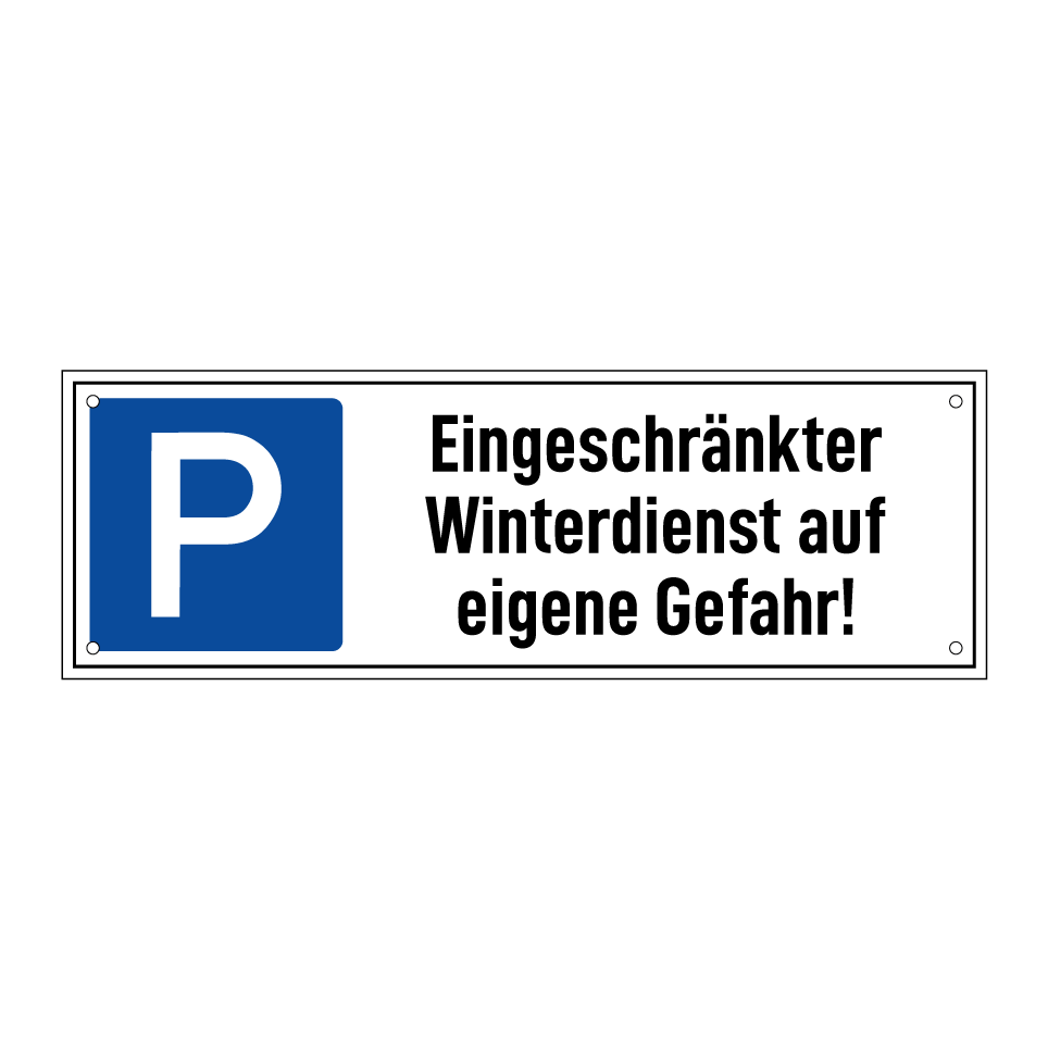 Parkschild mit dem Text Eingeschränkter Winterdienst auf eigene Gefahr!
