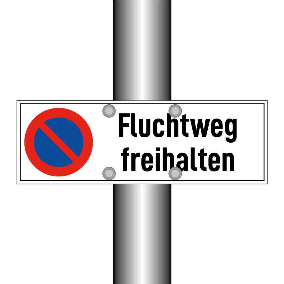 Parkverbotsschild mit dem Text Fluchtweg freihalten