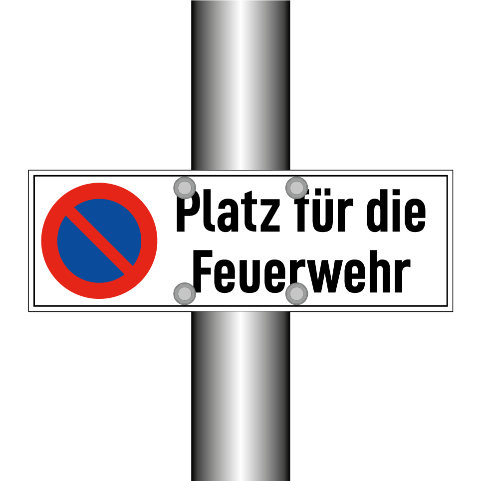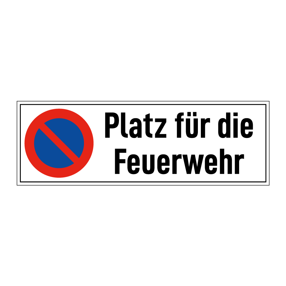 Parkverbotsschild mit dem Text Platz für die Feuerwehr