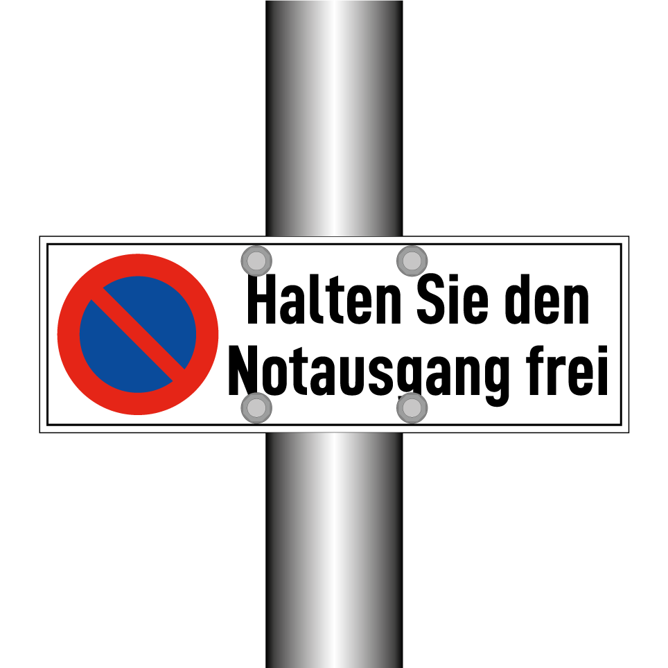 Parkverbotsschild mit dem Text Halten Sie den Notausgang frei