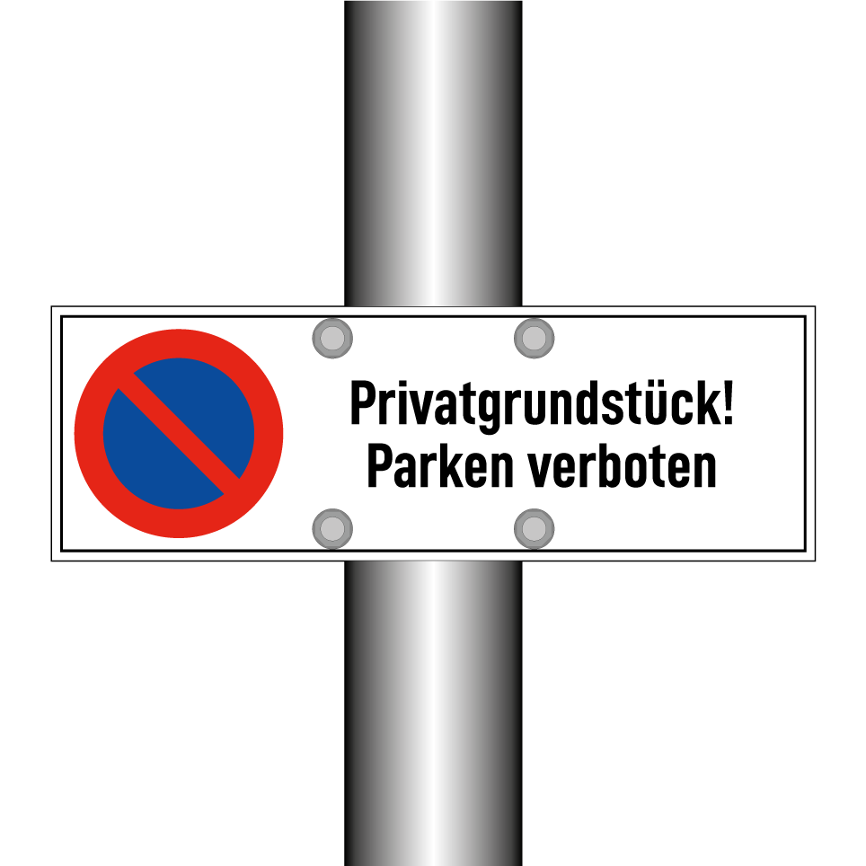 Parkverbotsschild mit dem Text Privatgrundstück! Parken verboten