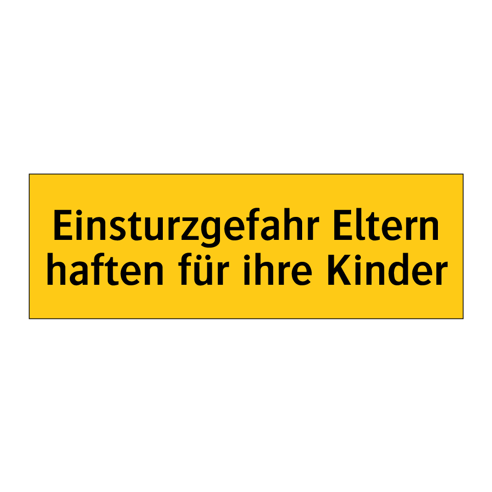 Warnschild mit dem Text Einsturzgefahr Eltern haften für ihre Kinder