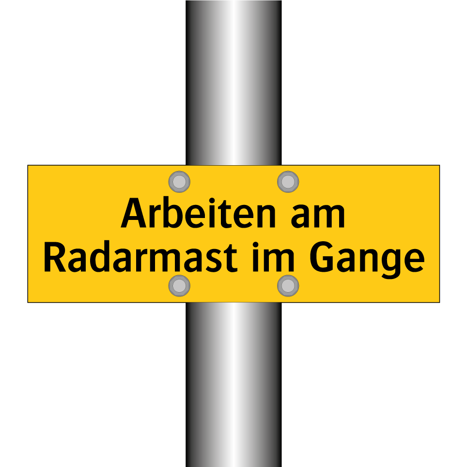 Warnschild mit dem Text Arbeiten am Radarmast im Gange