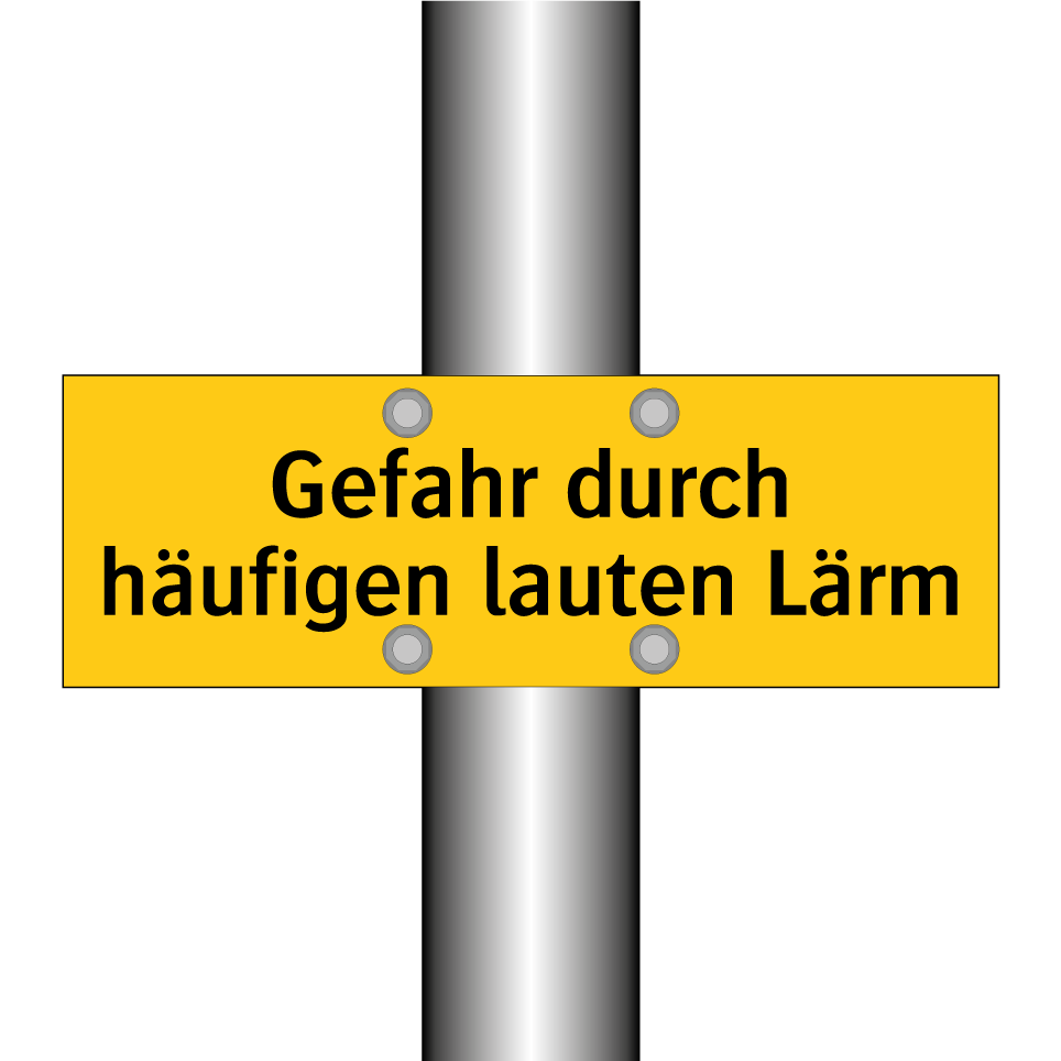Warnschild mit dem Text Gefahr durch häufigen lauten Lärm