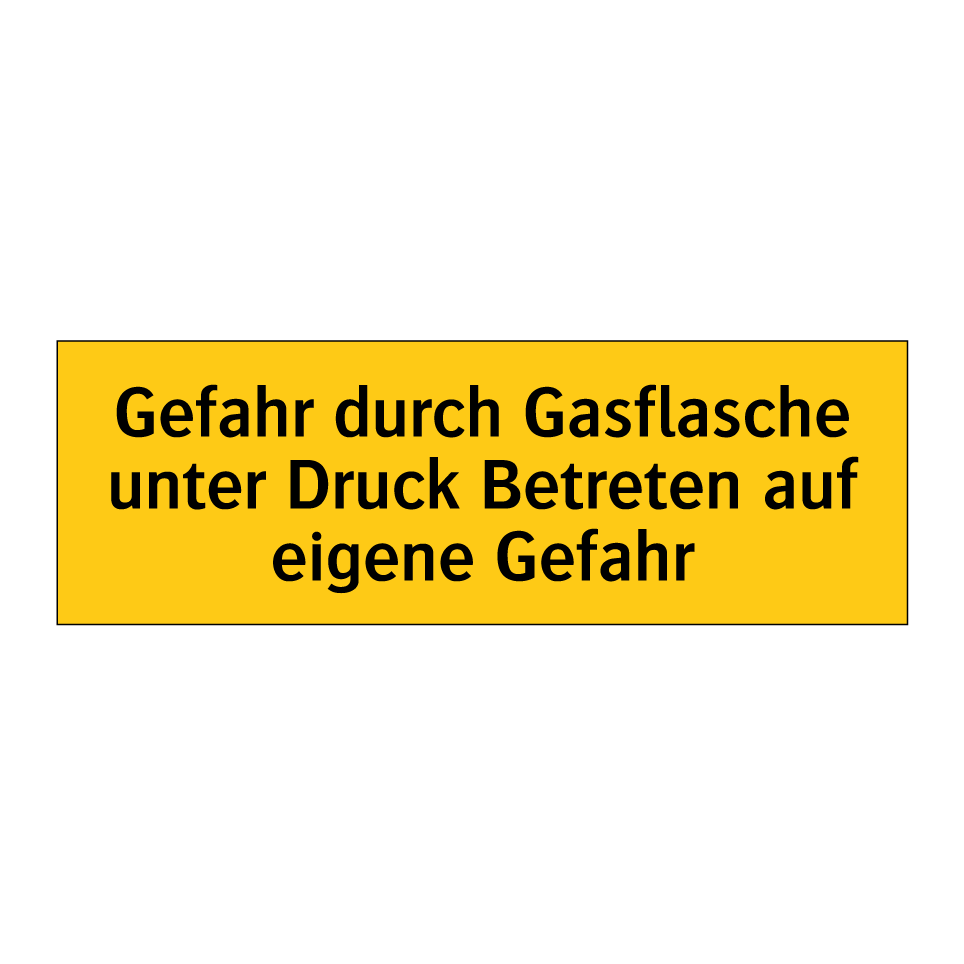 Warnschild mit dem Text Gefahr durch Gasflasche unter Druck Betreten auf eigene Gefahr