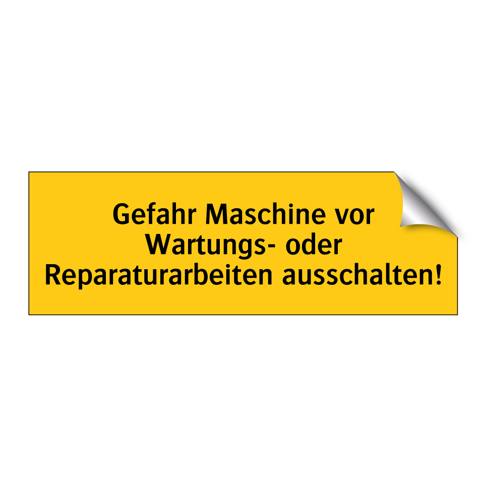 Warnschild mit dem Text Gefahr Maschine vor Wartungs- oder Reparaturarbeiten ausschalten!