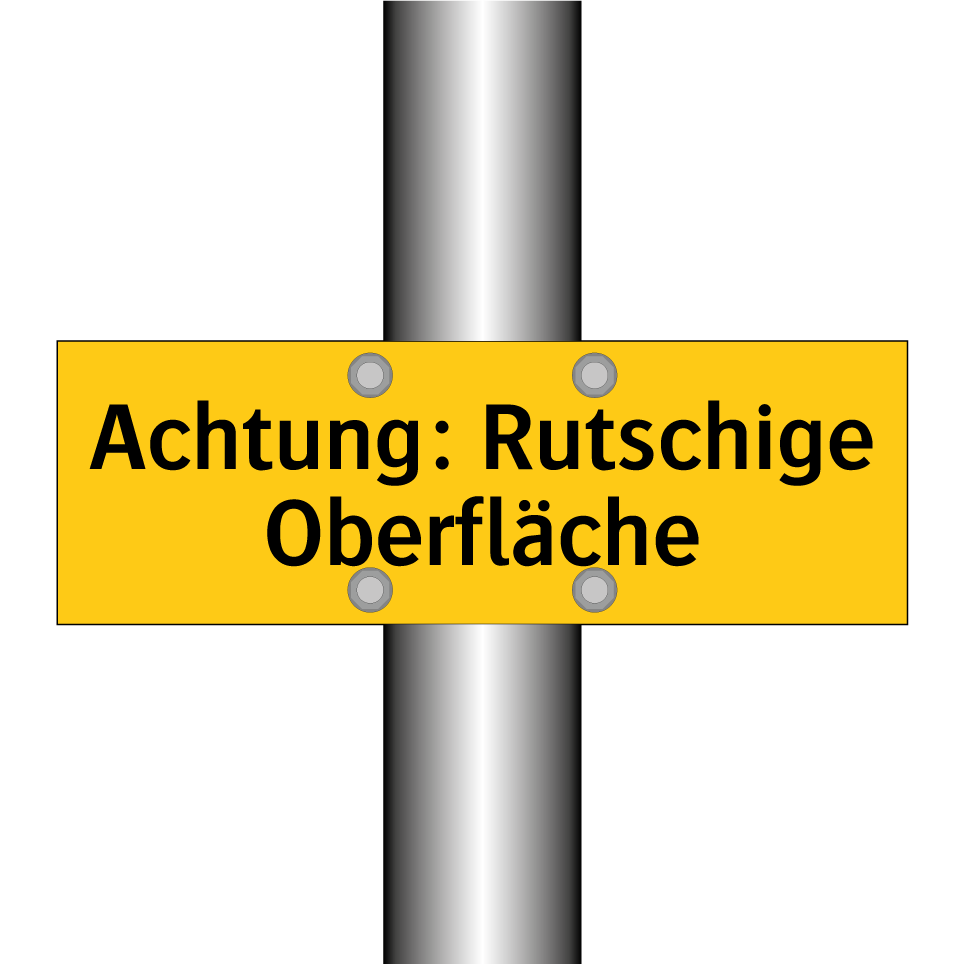 Warnschild mit dem Text Achtung: Rutschige Oberfläche