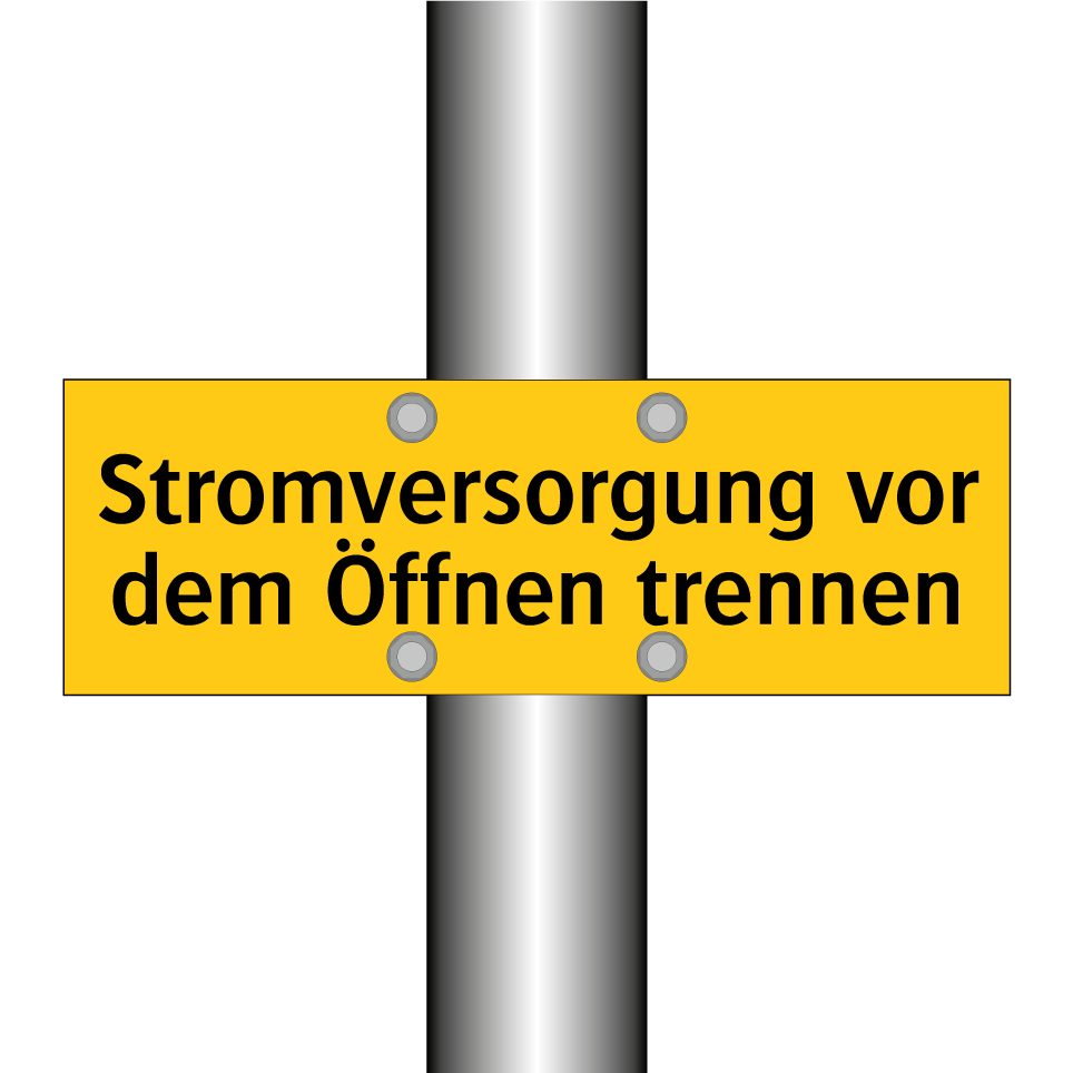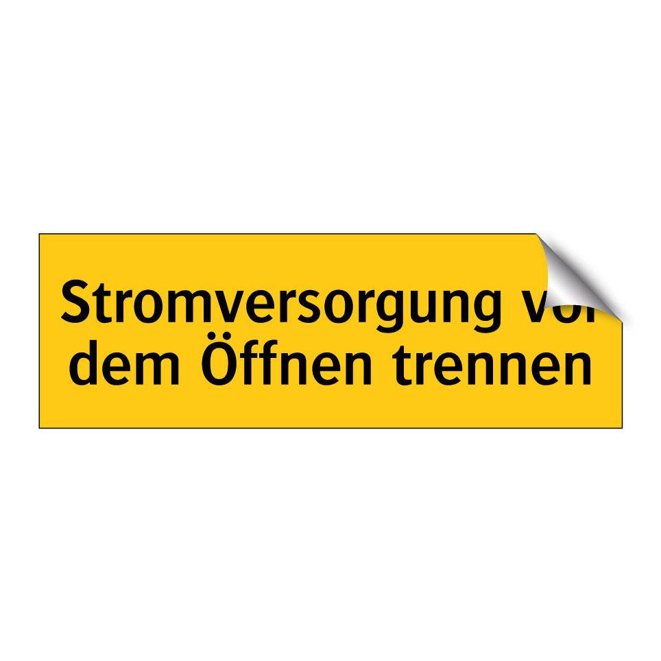 Warnschild mit dem Text Stromversorgung vor dem Öffnen trennen