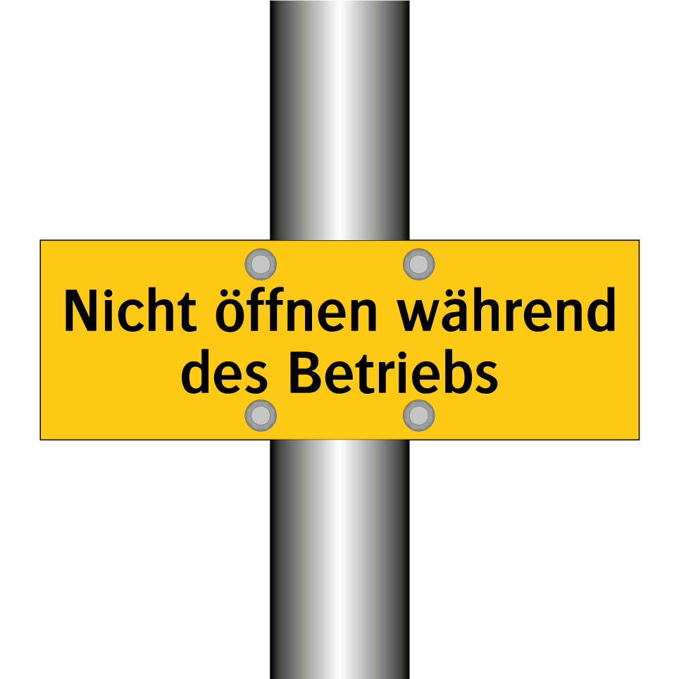 Warnschild mit dem Text Nicht öffnen während des Betriebs