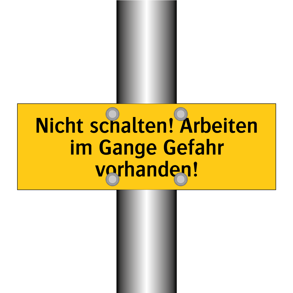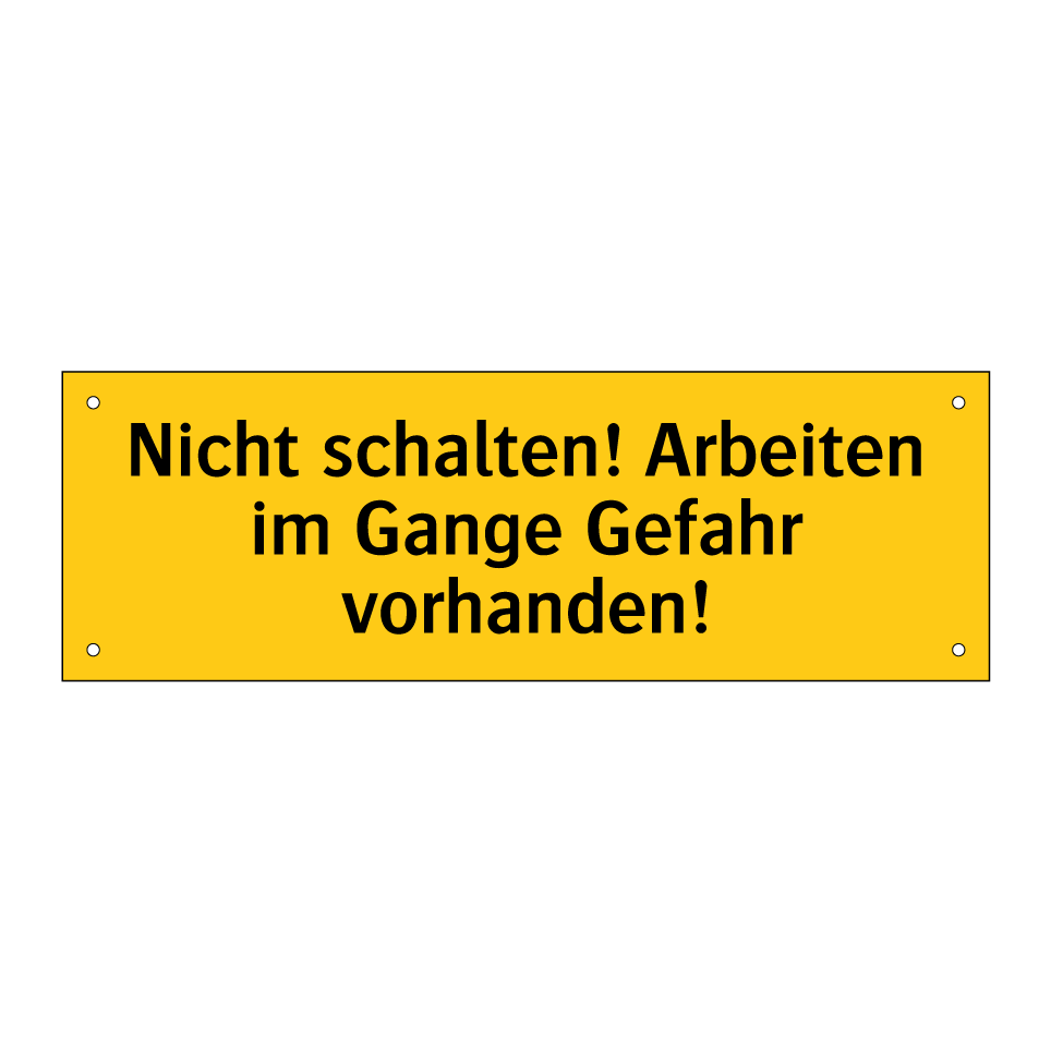 Warnschild mit dem Text Nicht schalten! Arbeiten im Gange Gefahr vorhanden!