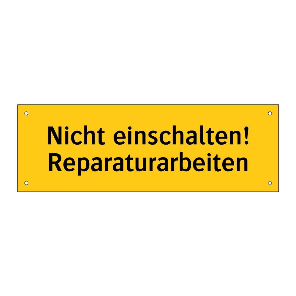 Warnschild mit dem Text Nicht einschalten! Reparaturarbeiten