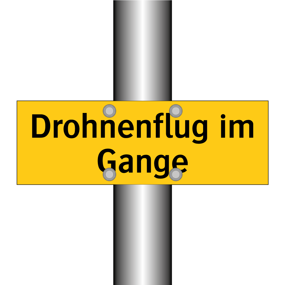 Warnschild mit dem Text Drohnenflug im Gange