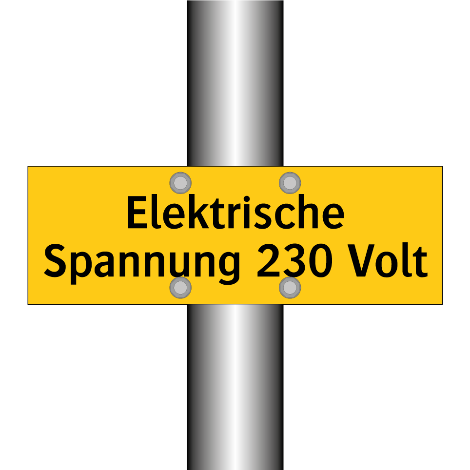 Warnschild mit dem Text Elektrische Spannung 230 Volt