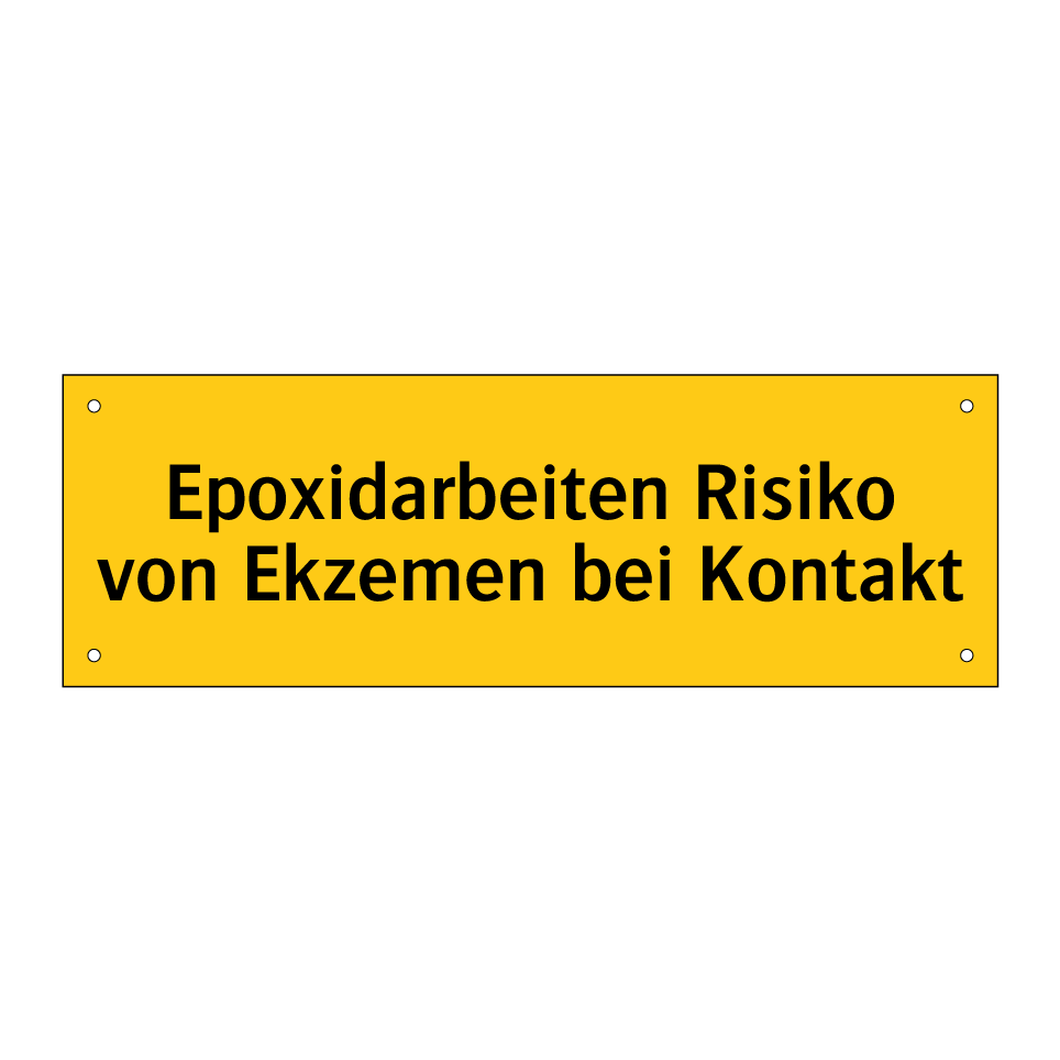 Warnschild mit dem Text Epoxidarbeiten Risiko von Ekzemen bei Kontakt