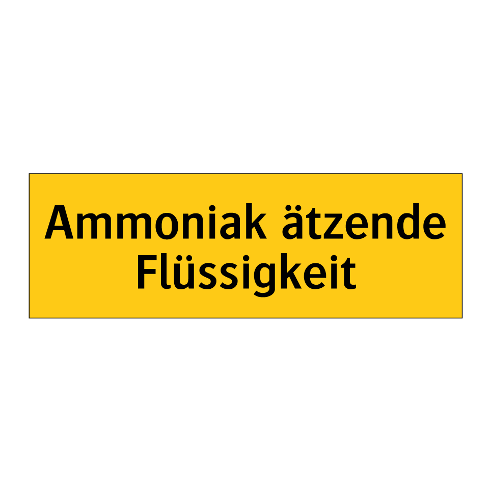Warnschild mit dem Text Ammoniak ätzende Flüssigkeit