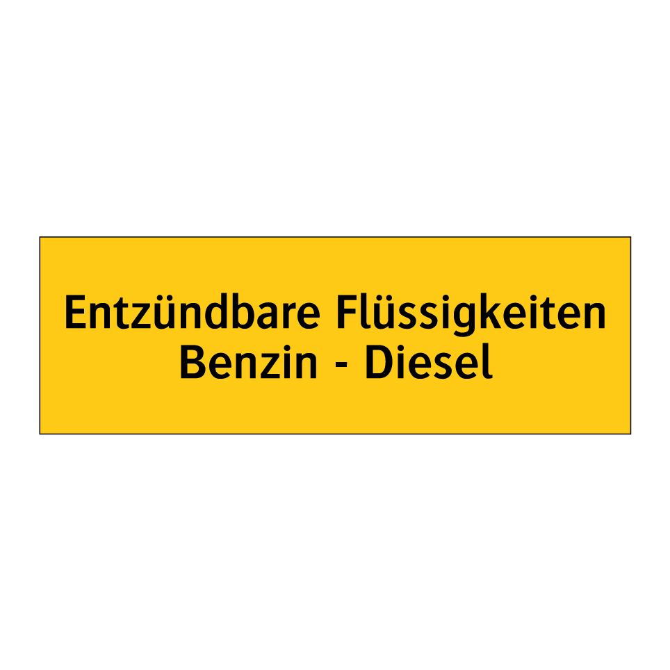 Warnschild mit dem Text Entzündbare Flüssigkeiten Benzin - Diesel