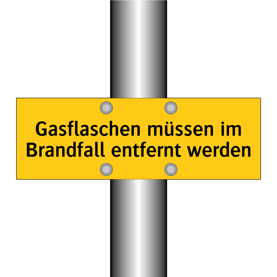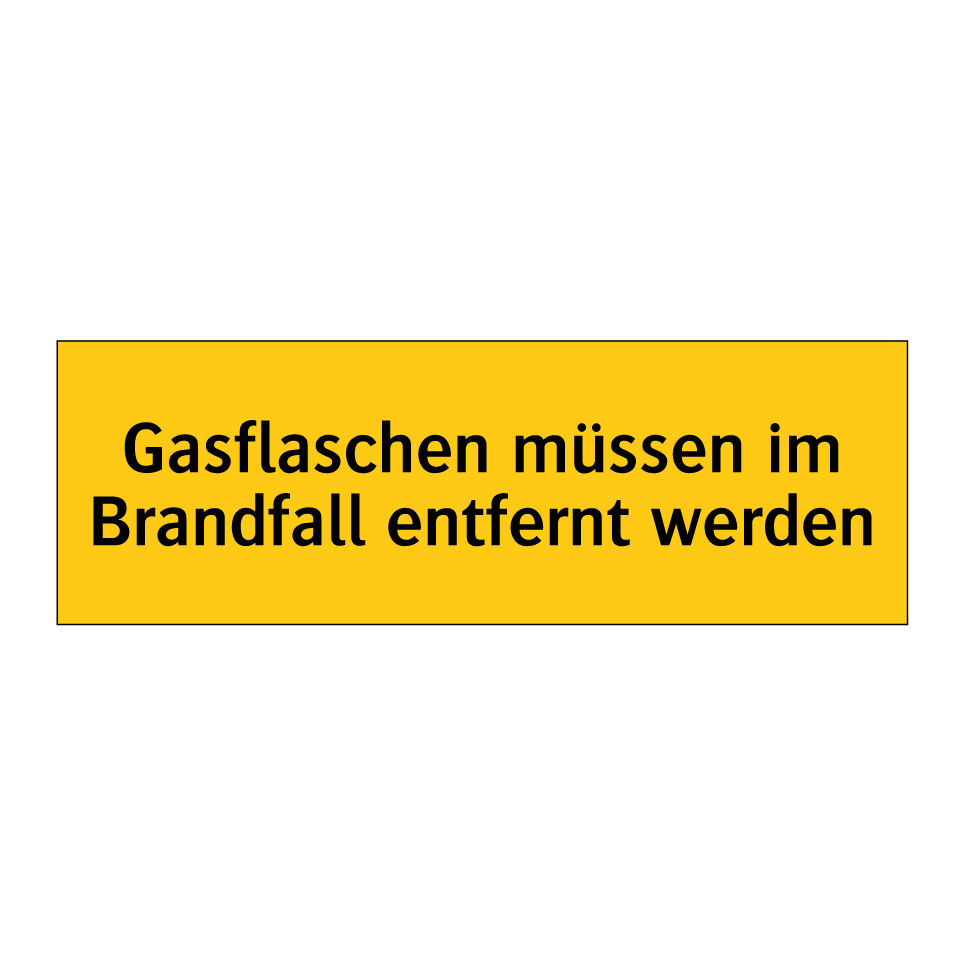 Warnschild mit dem Text Gasflaschen müssen im Brandfall entfernt werden